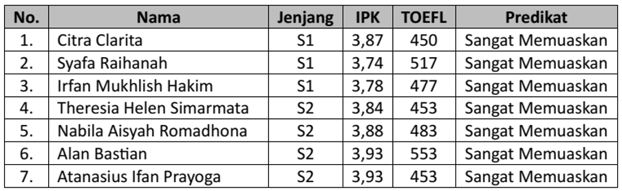 Yudisium periode ini total diikuti oleh 72 peserta. Seluruh calon lulusan dari S1 Adm. Bisnis dan S2 Magister Ilmu Administrsai berhasil memperoleh presikat kelulusan Sangat Memuaskan. Sebagian besar dari mereka juga memiliki nilai Test of English as a Foreign Language (TOEFL) diatas 450, dan bahkan ada yang di atas 500. Nilai TOEFL ini adalah nilai kemampuan bahasa Inggris bagi penutur non-asli dengan ujian terstandar secara internasional untuk keperluan akademik, seperti studi lanjut, melamar beasiswa, melamar kerja, atau untuk kepentingan institusional laiinya.