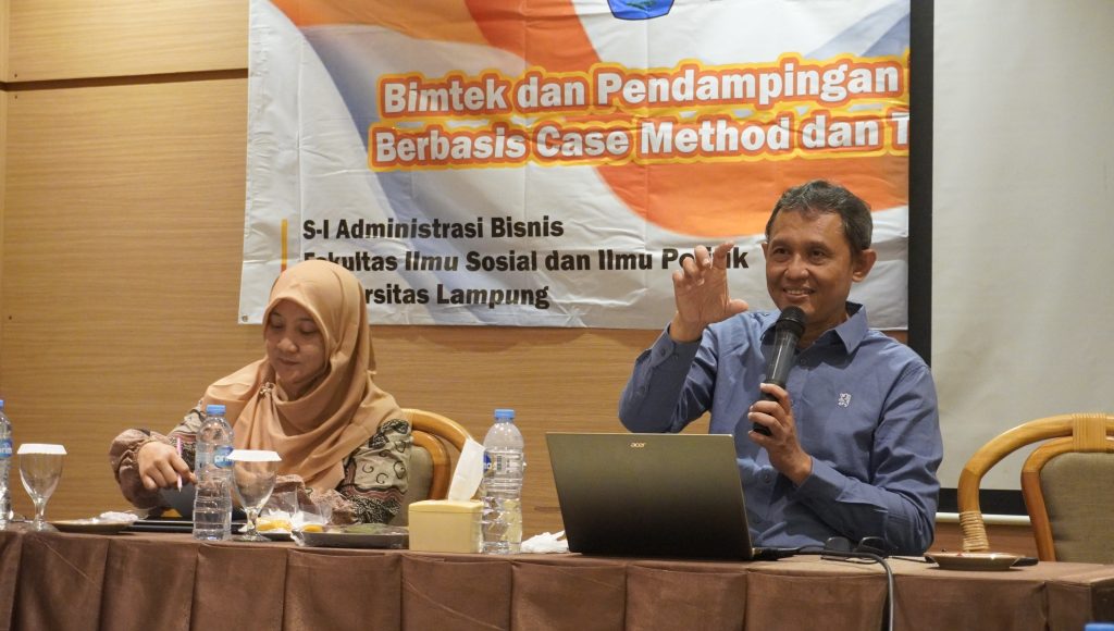 Kegiatan yang dihadiri oleh seluruh dosen Administrasi Bisnis dibuka langsung oleh Dekan FISIP Unila Dr. Anna Gustina Zainal, S.Sos., M.Si., bertujuan untuk meningkatkan kualitas pengajaran dan memperkaya metode pembelajaran yang diterapkan di kelas. Prof. Dr. Ir. Kusnandar, M.Si. memaparkan RPS secara detail dan efektif, serta bagaimana mengintegrasikan kedua metode pembelajaran yang inovatif ini. “Diharapkan, melalui BIMTEK ini, dosen-dosen dapat mengimplementasikan metode yang lebih interaktif dan aplikatif, sehingga mahasiswa dapat belajar lebih maksimal,” ujar Prof. Dr. Ir. Kusnandar, M.Si. dalam pemaparannya.
