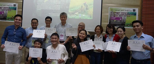 Perwakilan dari Jepang sekaligus koordinator program ini adalah Professor Yanagisawa Masayuki dari CSEAS Kyoto University Jepang. Pembicara dari Vietnam yang memberikan kuliah di awal program yaitu Director VNU-CRES Dr Luu The Anh tentang Risks and Challenges to Sustainable Development in Vietnam dan Vice President Vietnam Academy of Agricultural Sciences Dr Dao The Anh tentang Agricultural Policy to Minimize Inequality in Agricultural Sector in Vietnam. Turut hadir Director CSEAS Kyoto University Jepang Professor Hayami Yoko yang memberikan kuliah Different But/and Equal: Gender and Diversity in Southeast Asia.