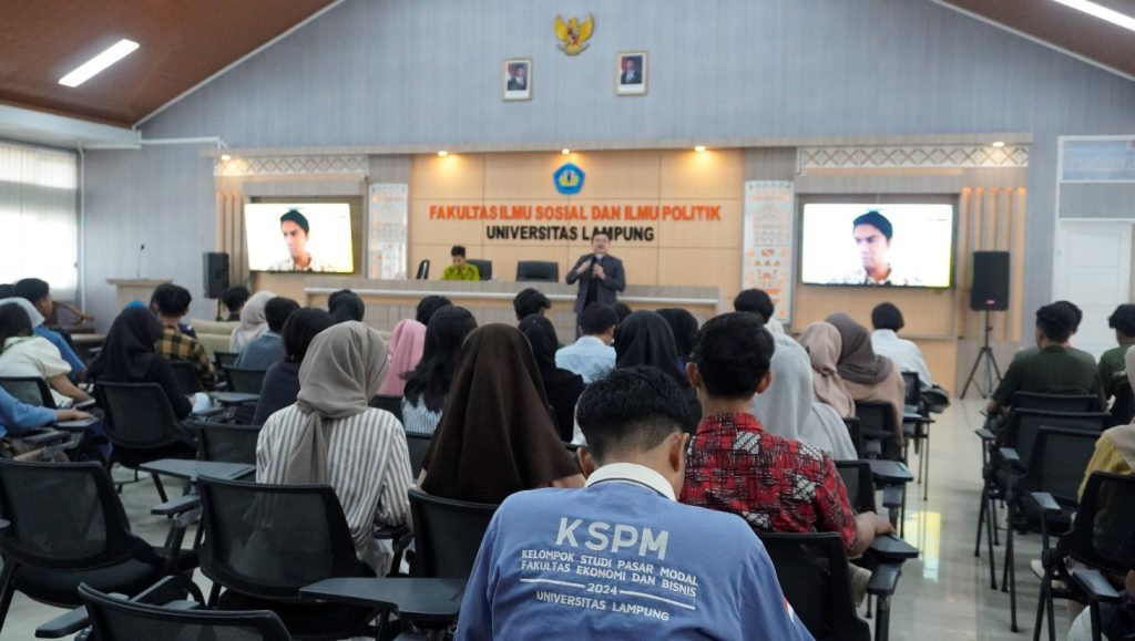 Galeri Investasi melalui Tim pelaksana Kelompok Studi Pasar Modal (KSPM) Fakultas Ilmu Sosial dan Ilmu Politik Universitas Lampung (FISIP Unila) sukses menggelar Seminar Nasional dengan tema Pengaruh Transisi Pemerintahan Republik Indonesia terhadap Pergerakan Saham. Seminar ini dilaksanakan dengan tujuan memberikan edukasi kepada masyarakat, khususnya mahasiswa dan para investor, mengenai literasi finansial dan pasar modal terkini.