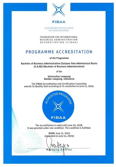 Persentase kelulusan tepat waktu (KTW) merupakan jumlah mahasiswa Program Sarjana (S1) yang berhasil menyelesaikan studi kurang atau sama dengan empat tahun, jika dibandingkan dengan total mahasiswa aktif pada angkatan tersebut. Pada Semester Ganjil 2024/2025 ini, KTW yang di ukur adalah untuk mahasiswa yang masuk pada Tahun Akademik 2020/2021. “Persentase 48% ini adalah capaian kelulusan tepat waktu bagi mahasiswa angkatan 2020 yang lulus maksimal sampai dengan bulan Agustus 2024”, jelas Ketua Jurusan Ilmu Administrsai Bisnis Fisip Unila, Dr. Ahmad Rifa’i, S.Sos, M.Si. Prestasi ini juga sebagai upaya dalam mempertahankan Akreditasi UNGGUL dari BAN-PT dan juga Akreditasi Internasional FIBAA (Foundation for International Business Administration Accreditation) yang telah di peroleh jurusan sejak tahun 2023.