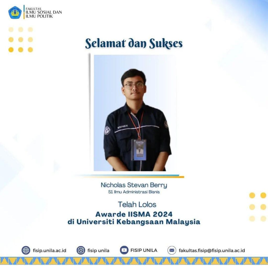 Ranissa Fidela Syafarman, seorang mahasiswi berbakat Administrasi Bisnis FISIp Universitas Lampung angkatan tahun 2020, berhasil meraih gelar Juara Kategori Duta Muslimah Preneur Tahun 2024 dalam ajang bergengsi yang diselenggarakan oleh IPEMI (Ikatan Pengusaha Muslim Indonesia). Kompetisi ini bertujuan untuk memunculkan
