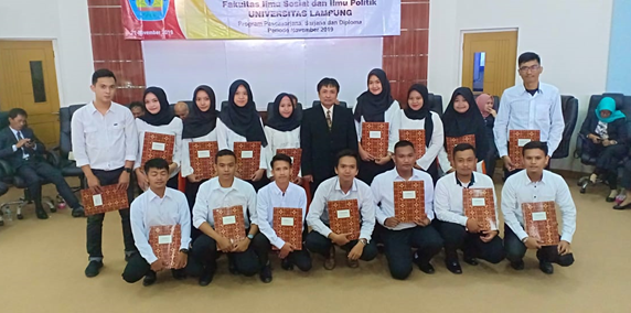 Kamis, 21 November 2019 merupakan hari yang sangat membanggakan dan menggembirakan bagi civitas akademika Jurusan Administrasi Bisnis FISIP Unila. Pasalnya hari itu 2 orang mahasiswa Administrasi Bisnis mengukir prestasi akademik tertinggi. Kali ini, Sumiati (NPM 1516051034) berhasil menjadi Wisudawan Terbaik Kedua Fakultas Pada Yudisium Pasca Sarjana, Sarjana dan Diploma FISIP Unila Periode November 2019. Sumi, panggilan akrabnya hanya kalah dari teman satu angkatan dan satu jurusan yaitu Ledia Putri Kinanti yang berhasil meraih predikat terbaik pertama Fakultas. Sumi memiliki Indek Prestasi Kumulatif (IPK)= 3,83 (skala 4,0) dengan masa studi 4 tahun. IPK Sumi (3,83) hanya terpaut 0,01 point dari IPK Ledia (3,84) sebagai wisudawan terbaik pertama Fakultas. Sumi berhasil meraih wisudawan terbaik kedua setelah meyisihkan 95 wisudawan lainnya dari 6 jurusan strata sarjana, yaitu Jurusan Sosiologi, Pemerintahan, Komunikasi, Administrasi Negara, Administrasi Bisnis, dan Hubungan Internasional.